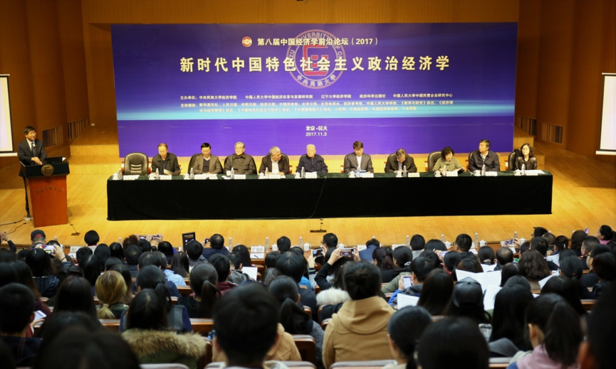 为学习和贯彻落实党的十九大精神,2017年11月3日,中国人民大学中国经济改革与发展研究院联合中央民族大学经济学院、辽宁大学经济学院、经济科学出版社和中国人民大学中国民营企业研究中心主办的“第八届中国经济学前沿论坛(2017)——新时代中国特色社会主义政治经济学”在中央民族大学隆重举行。